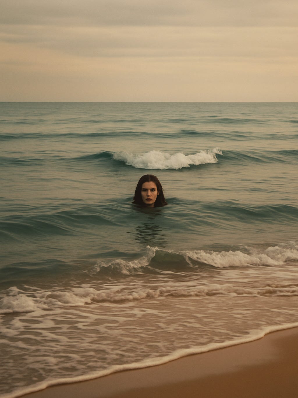 She hovered at the water’s edge, the wind biting her exposed skin. The children’s laughter drifted over to her, tugging at something familiar yet half-dreamed. She could only stay there - caught between two worlds.